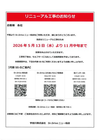 ニュー柏店リニューアル工事のお知らせ